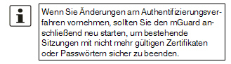 Die Konfiguration des mGuards darf nicht gleichzeitig über den Web-Zugriff, den Shell-Zugang oder SNMP erfolgen. Eine zeitgleiche Konfiguration über die verschiedenen Zugangsmethoden führt möglicherweise zu unerwarteten Ergebnissen. |