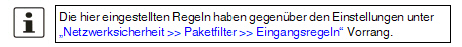 –lokal konfigurierte Netze (siehe „Netzwerk >> Interfaces“ auf Seite 115)