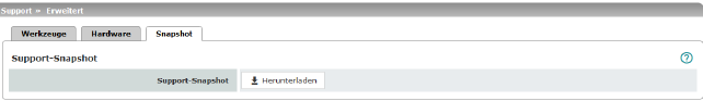 Um einen Support-Snapshot oder einen Support-Snapshot mit persistenten Logs zu erstellen, gehen Sie wie folgt vor: •Die Schaltfläche Herunterladen klicken. •Die Datei speichern (unter dem Namen snapshot-YYYY.MM.DD-hh.mm.ss.tar.gz bzw. snapshot-all-YYYY.MM.DD-hh.mm.ss.tar.gz) Stellen Sie die Datei dem Support Ihres Anbieters zur Verfügung, wenn dies erforderlich ist. |