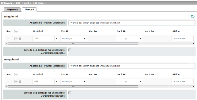 Netzwerk >> GRE-Tunnel >> Editieren >> Firewall |