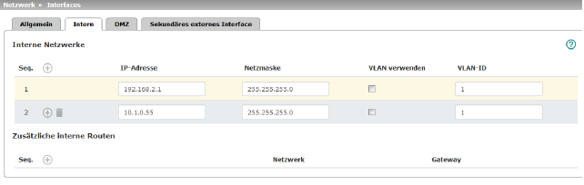 Im Netzwerk-Modus Router kann zusätzlich ein sekundäres externes Interface konfiguriert werden (siehe „Sekundäres externes Interface“ auf Seite 157).
