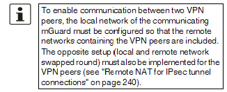 With a star VPN connection topology, mGuard peers can also exchange data with one another. In this case, it is recommended that the local mGuard consults CA certificates for the authentication of peers (see "Authentication" on page 244). |