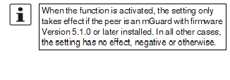 Default setting: deactivated Only activate this function if the TCP encapsulation function is used. Only then can the mGuard allow connection establishment with encapsulated packets.