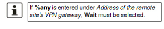 The interfaces to be used for listening are determined by the mGuard according to the settings on the active VPN connections that have “%any” configured as the peer. The decisive setting is specified under “Interface to use for gateway setting %any”. |