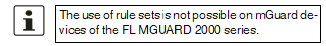 If multiple firewall rules are defined, these are queried starting from the top of the list of entries until an appropriate rule is found. This rule is then applied. If the list of rules contains further subsequent rules that could also apply, these rules are ignored. |
