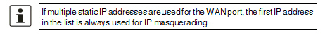 If the mGuard is in Router mode, it acts as the gateway between various subnetworks and has both an external interface (WAN port) and an internal interface (LAN port) with at least one IP address.